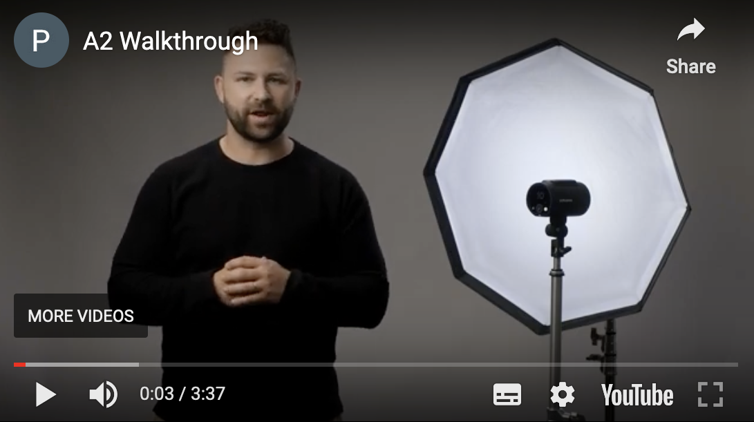 The Profoto A2 Kit featuring the Profoto Connect and the A2 is a powerful and easy-to-use combination. Used together with the Profoto Control app it gives you seamless control and freedom to bring your vision to life. Anytime, anywhere.