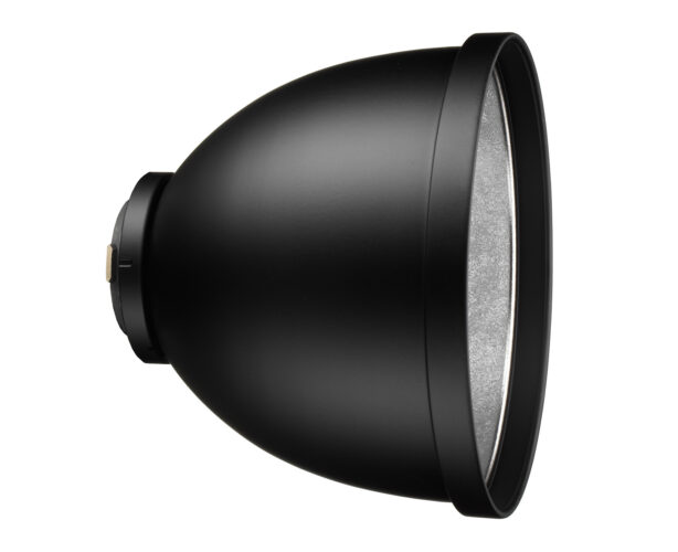broncolor standard reflector, slightly textured open reflector, optimised for Pulso G. The ideal light shaper for every situation, it has a high light output and a homogenous light distribution. Its light angle is 65°. It can be combined with different honeycomb grids, with 2 or 4 barn-doors and colour filters.