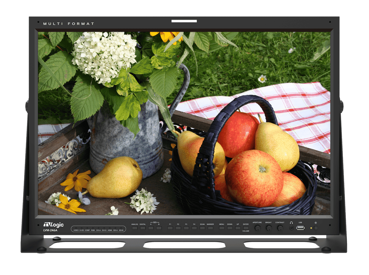 The 24in LCD monitor has a full HD resolution of 1920 x 1200, providing a clear and detailed display. It also features a waveform and vectorscope, as well as a 16-channel audio level meter for precise audio monitoring. Other useful tools include focus assist, markers, timecode display, and dynamic UMD for customizable on-screen information. The monitor also has options for blue/mono only display, H/V delay, and luma (Y) zone check for accurate color and brightness analysis. Additionally, it offers various scan modes, closed caption support for both CEA-608 and CEA-708 standards, and a tally function for live production environments.